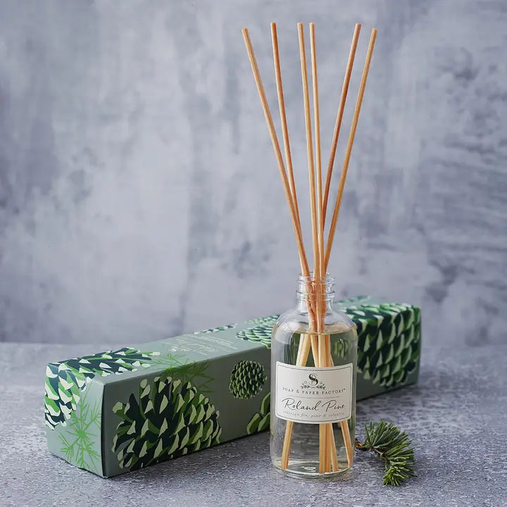Our best-selling Reed Diffuser is the perfect way to fragrance any space! Its simple, chic design adds a pop, while its powerhouse formulation will permeate the air with the aroma of Roland Pine!