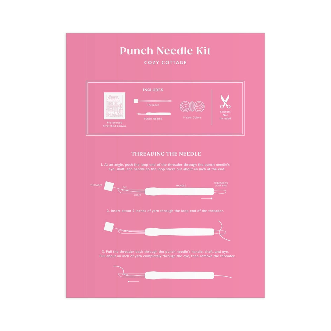 Craft a charming cottage scene with the Cozy Cottage Punch Needle Kit, curated by artist Molly Egan. This all-inclusive kit provides everything required to master punch needle embroidery, featuring a pre-printed design canvas, premium yarn selection, and comprehensive guidance. The inviting cottage imagery evokes warmth and nostalgia, making it an ideal project for textile enthusiasts of all skill levels. Upon completion, your handcrafted piece becomes a distinctive decorative accent that showcases both artistic vision and technical skill.